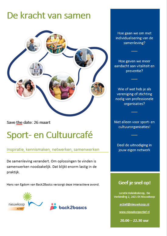 Dit keer een netwerkcafé waar professionals, verenigingen en andere initiatieven elkaar vinden met een inspirerende spreker van Back2Basics.